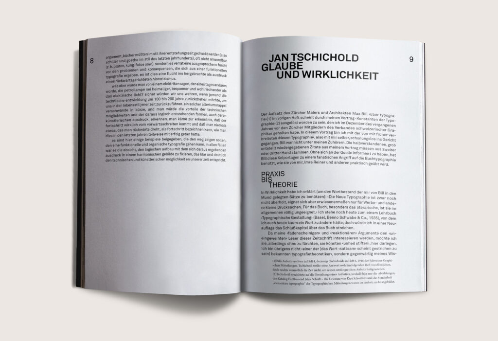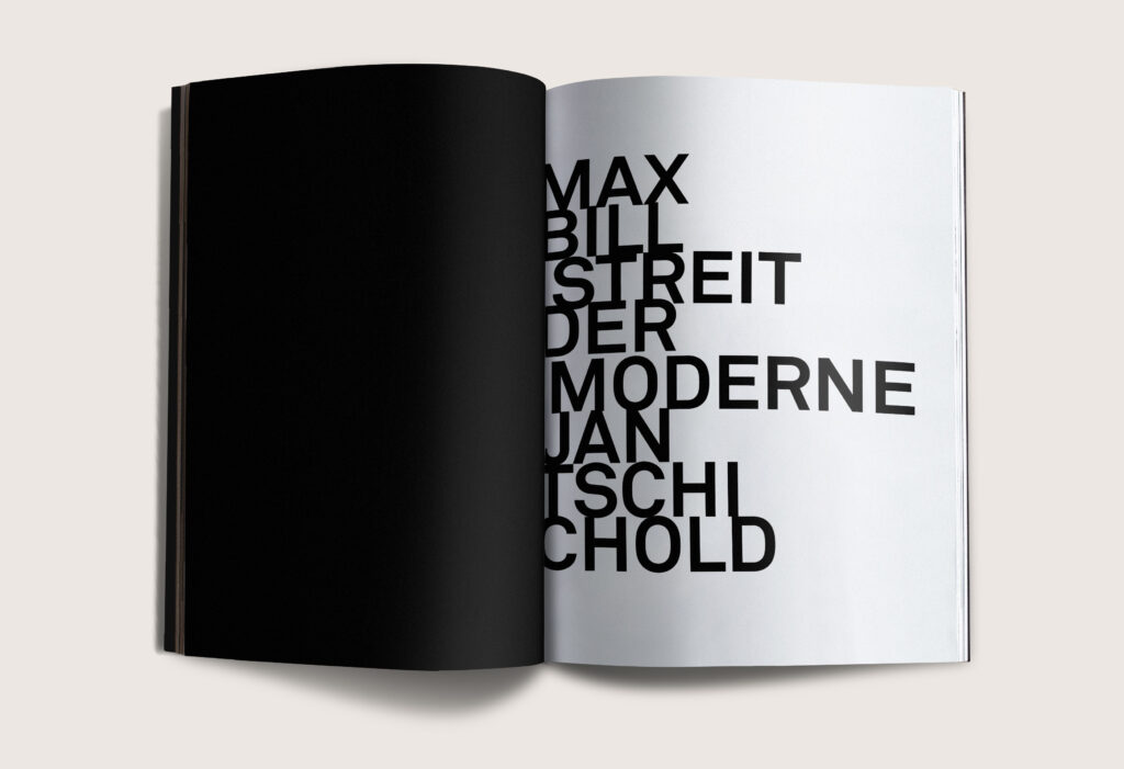 Streit der Moderne beleuchtet den Konflikt zwischen Max Bill und Jan Tschichold mit einem Design, das klare Linien und konfrontative Elemente nutzt. Die Gestaltung spiegelt die Spannung der beiden Ideen wider und wurde im Rahmen eines Studienprojekts entwickelt.